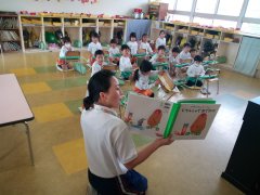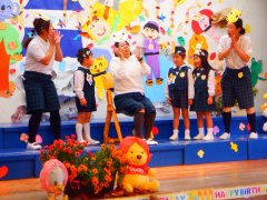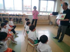 まだまだプレゼントはあります。園長先生からの絵本のプレゼントを副園長先生に渡して頂き、沢山のプレゼントにお誕生児さんは笑顔一杯でした。