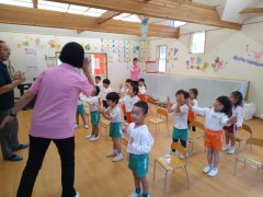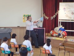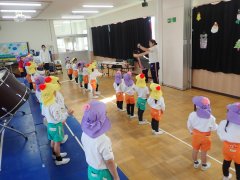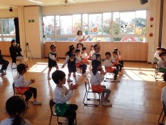 先生の出し物では楽器も沢山登場して、お誕生児さんも合奏のお手伝いをしてくれましたよ。