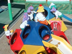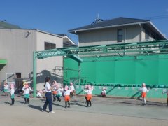 お部屋で季節のうたをうたって、出席をとったり広い園庭でのびのびと黒川先生の体育遊びでした。